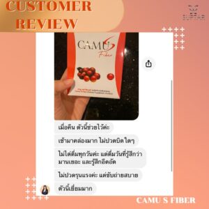 Camu S Fiber เป็นไฟเบอร์ที่ช่วยดีท็อกซ์ของเสียในร่างกาย กระตุ้นการขับถ่ายไม่ปวดบิด ช่วยให้สัดส่วนดีขึ้น ด้วยสารสกัดจาก ผัก และผลไม้ รวมถึงผลไม้ตระกูลเบอร์รี่ ที่หลายคนทราบว่า เบอร์รี่ช่วยบำรุงสายตา แต่รู้ไหมว่า เบอร์ที่เราพูดถึง ช่วยลดน้ำหนัก และบำรุงผิวได้ดีเลย ยิ่งไปกว่านั้นนะคะ ราชาวิตามินซี อย่างผล Camu Camu ที่เป็นผลไม้ตระกูลเบอร์รี่จากแอฟริกาใต้ ที่แพงที่สุด มาอยู่ใน คามูเอสไฟเบอร์ จะช่วยในเรื่องของผิวพรรณ และเสริมภูมิคุ้มกันได้ดีมาก